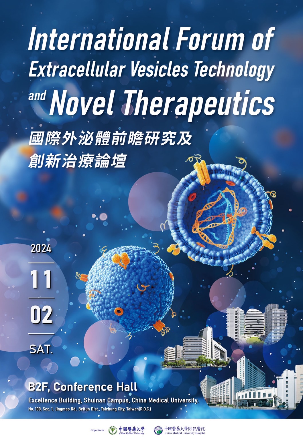 國內具全球視野與深度的「國際外泌體前瞻研究及創新治療論壇」,11月2日在中國醫藥大學醫療體系的水湳校區盛大登場,艾萬霖生技董事長林奏延也受邀為下午場次的座長。