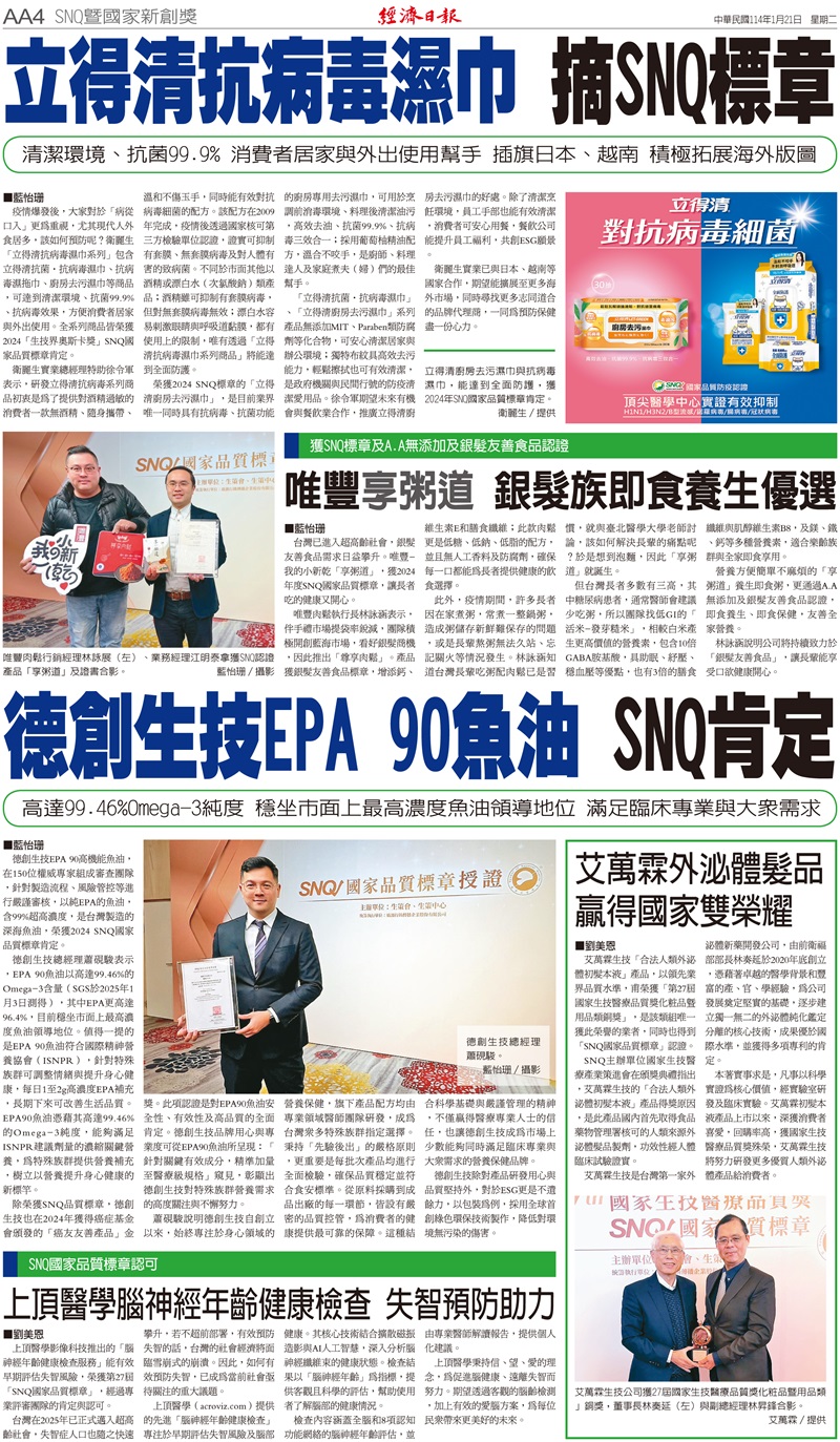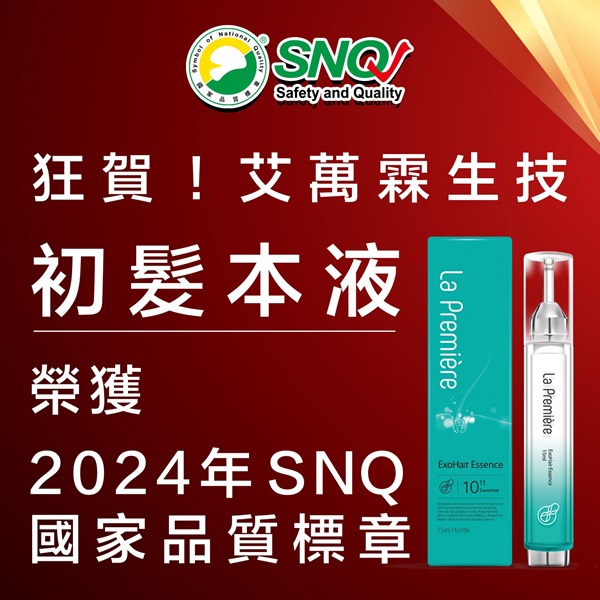 SNQ主辦單位國家生技醫療產業策進會在頒獎典禮上指出,艾萬霖生技的「合法人類外泌體初髮本液」產品得獎原因,是國內首先取得食品藥物管理署核可的人類來源外泌體養髮液,經人體臨床試驗證實,滋養髮根及強健髮質作用顯著。